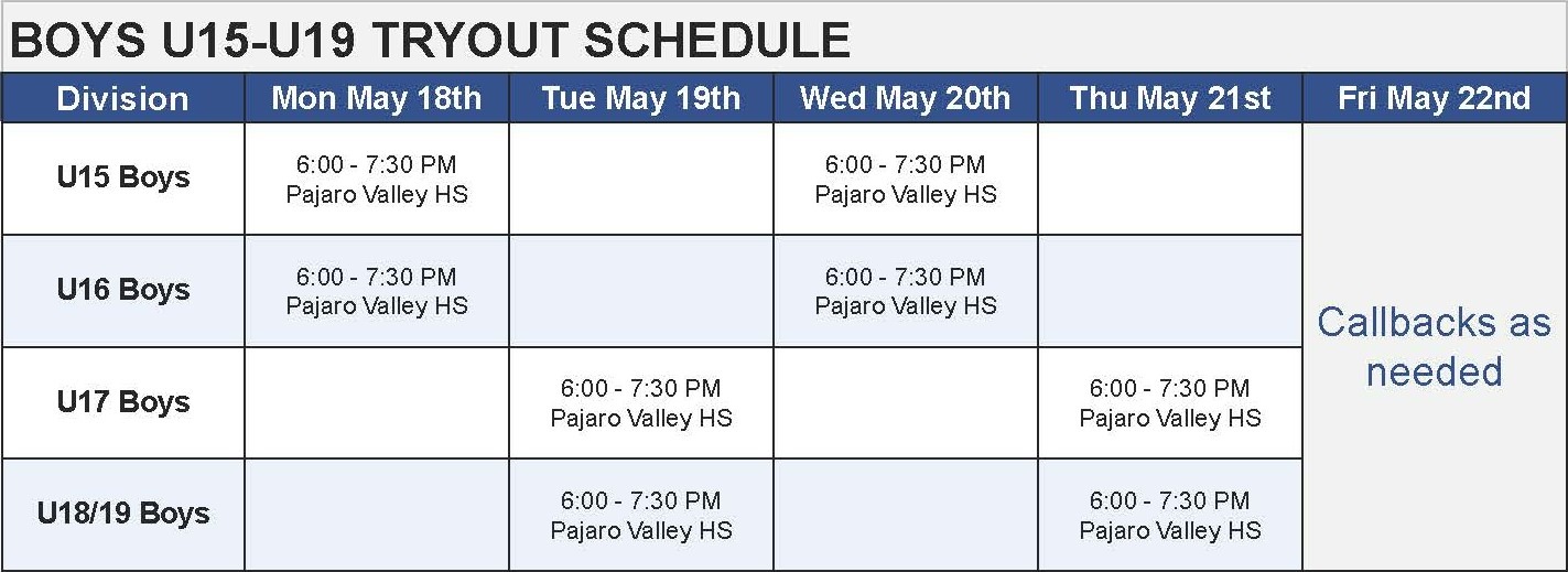 - All tryouts align with the NorCal Premier Soccer tryout window